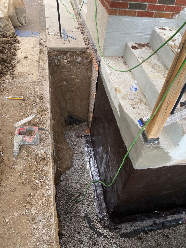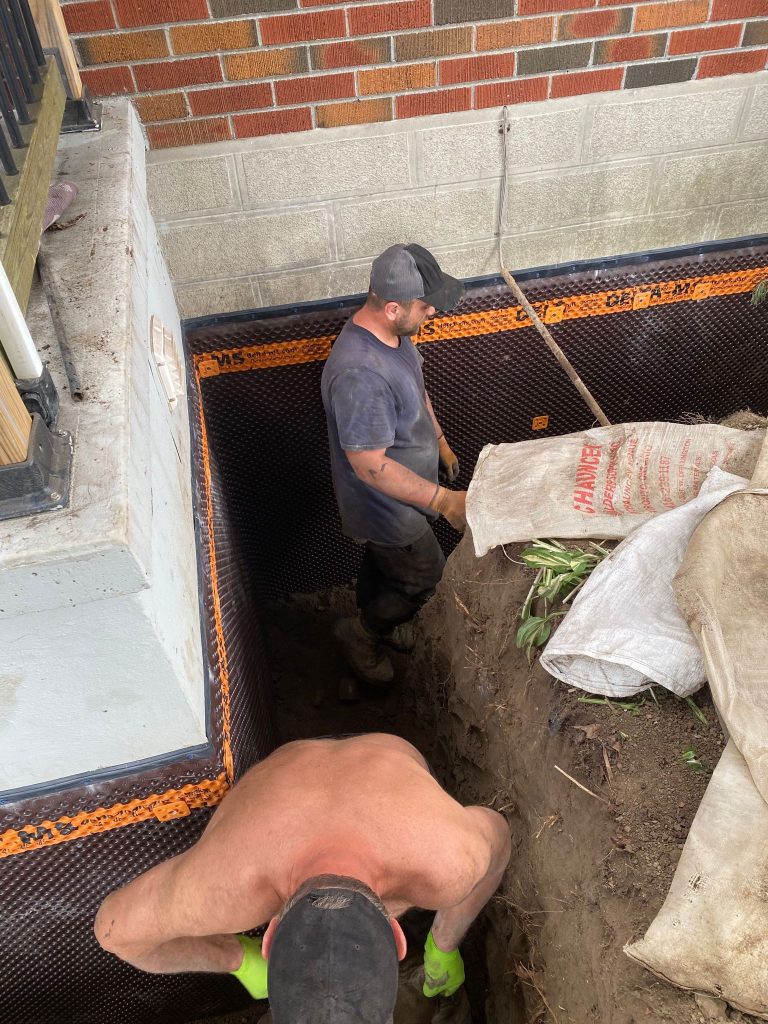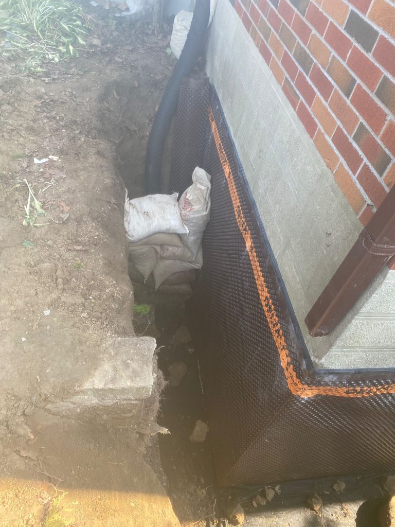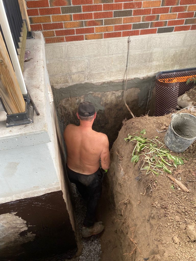 Exterior foundation waterproofing was completed around the cold room, as well as the front and side foundation walls of the property, to address water infiltration and protect the home from future moisture issues.
