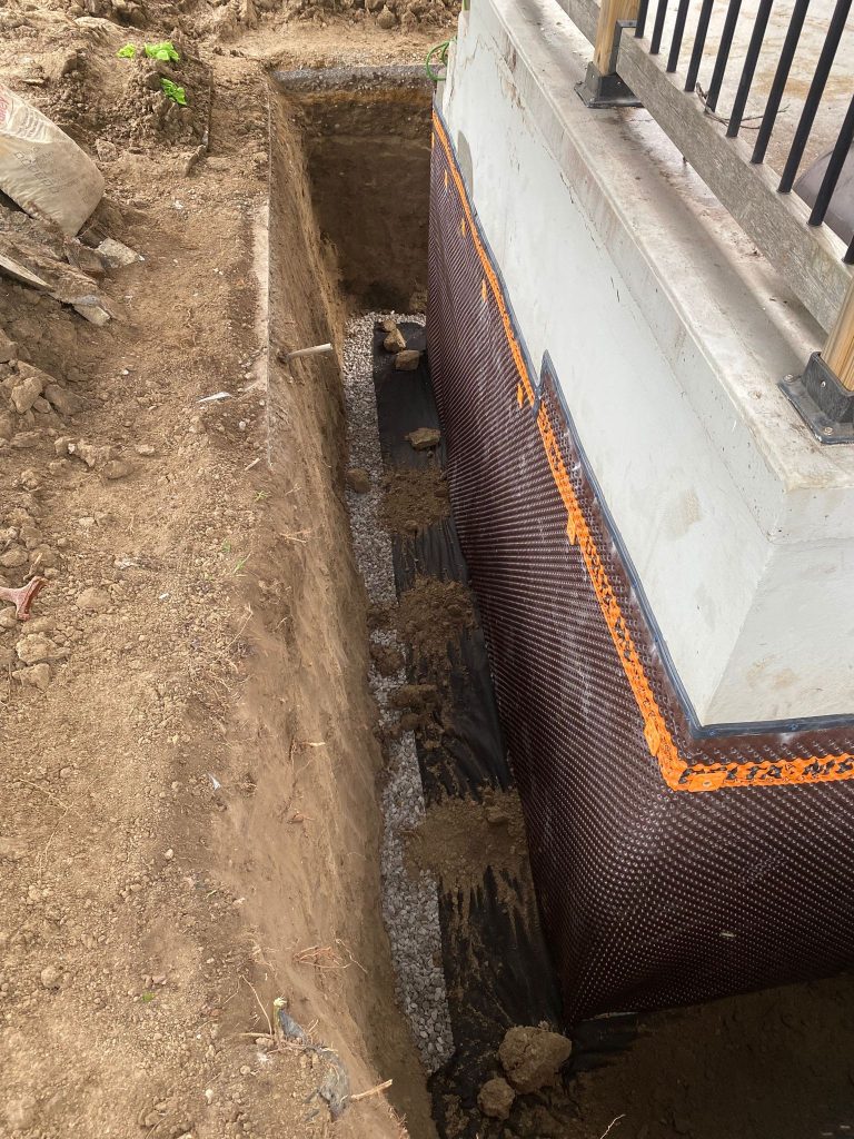 After waterproofing was completed, the excavation was carefully backfilled and the work areas restored, ensuring proper grading and drainage away from the foundation.