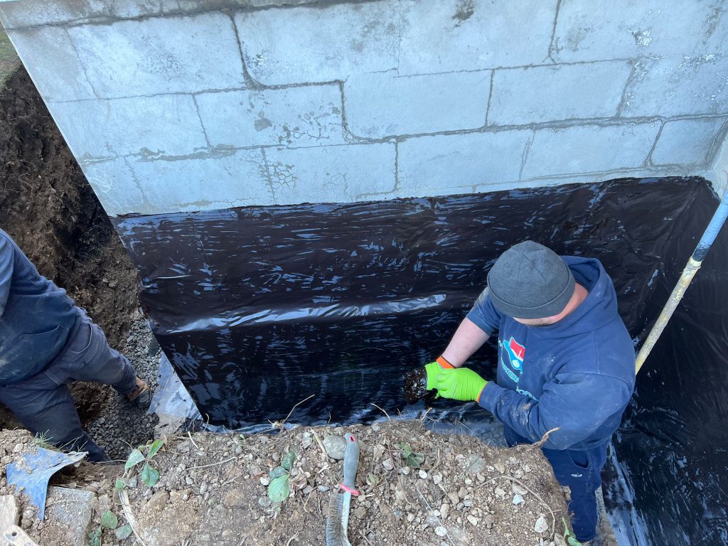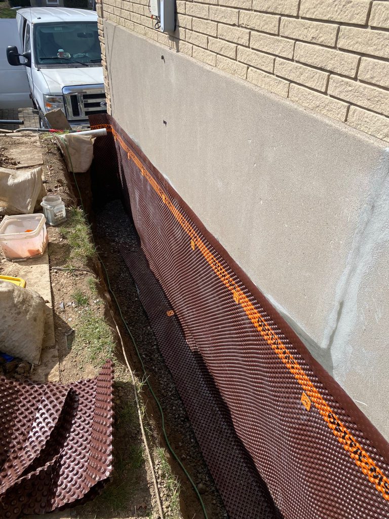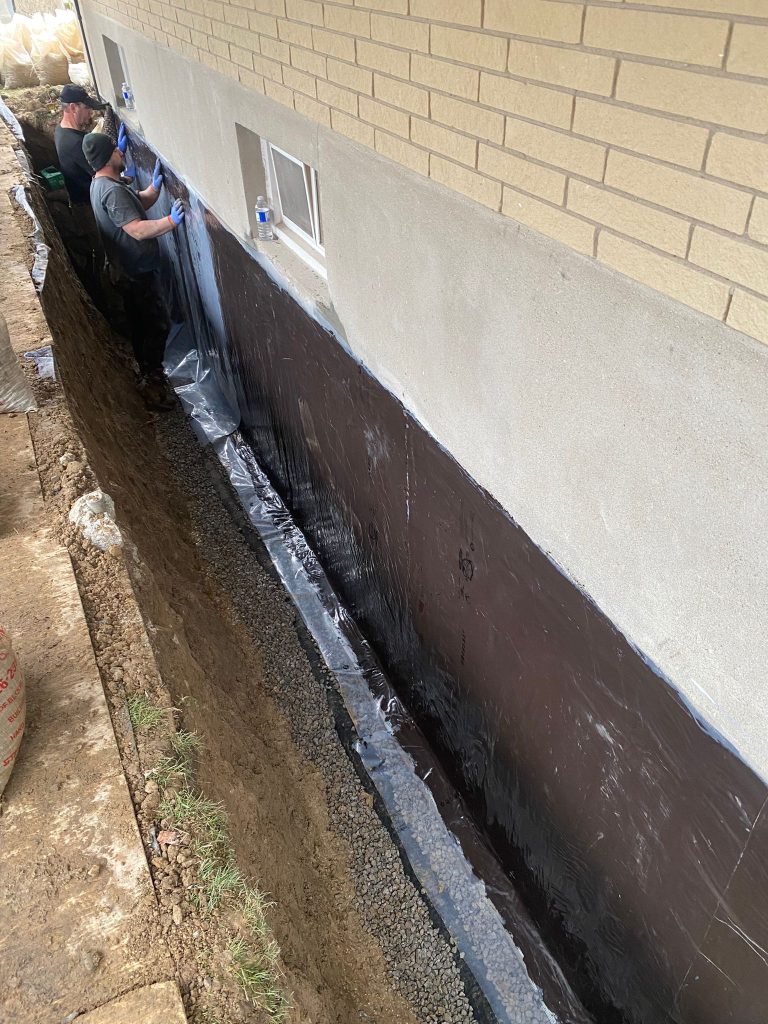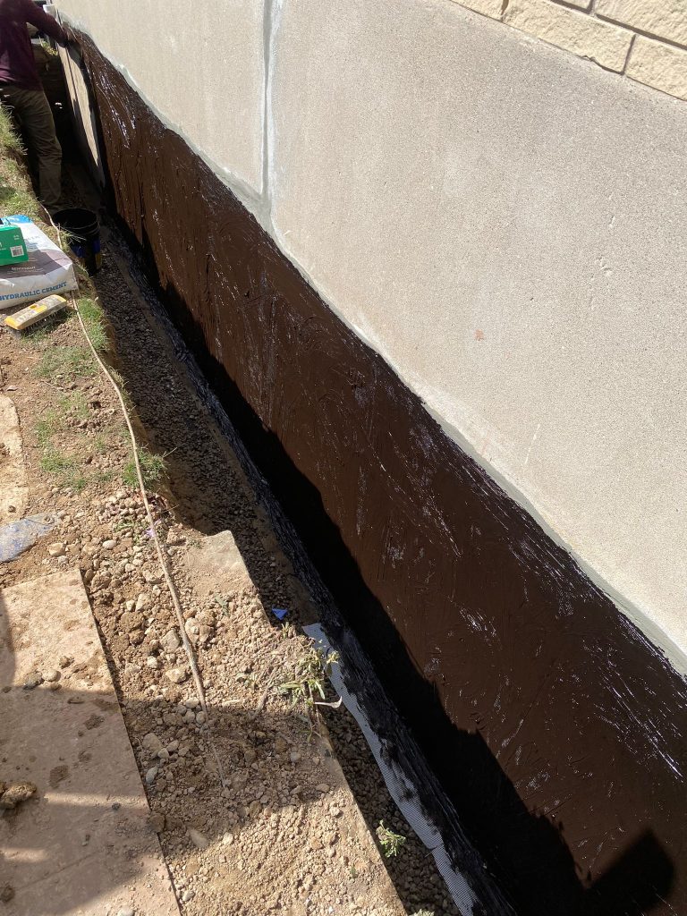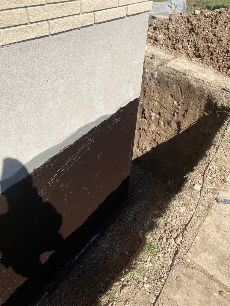 Exterior foundation waterproofing was completed on nearly the entire exterior foundation of the property to address widespread moisture concerns and provide long‑term protection against water infiltration.