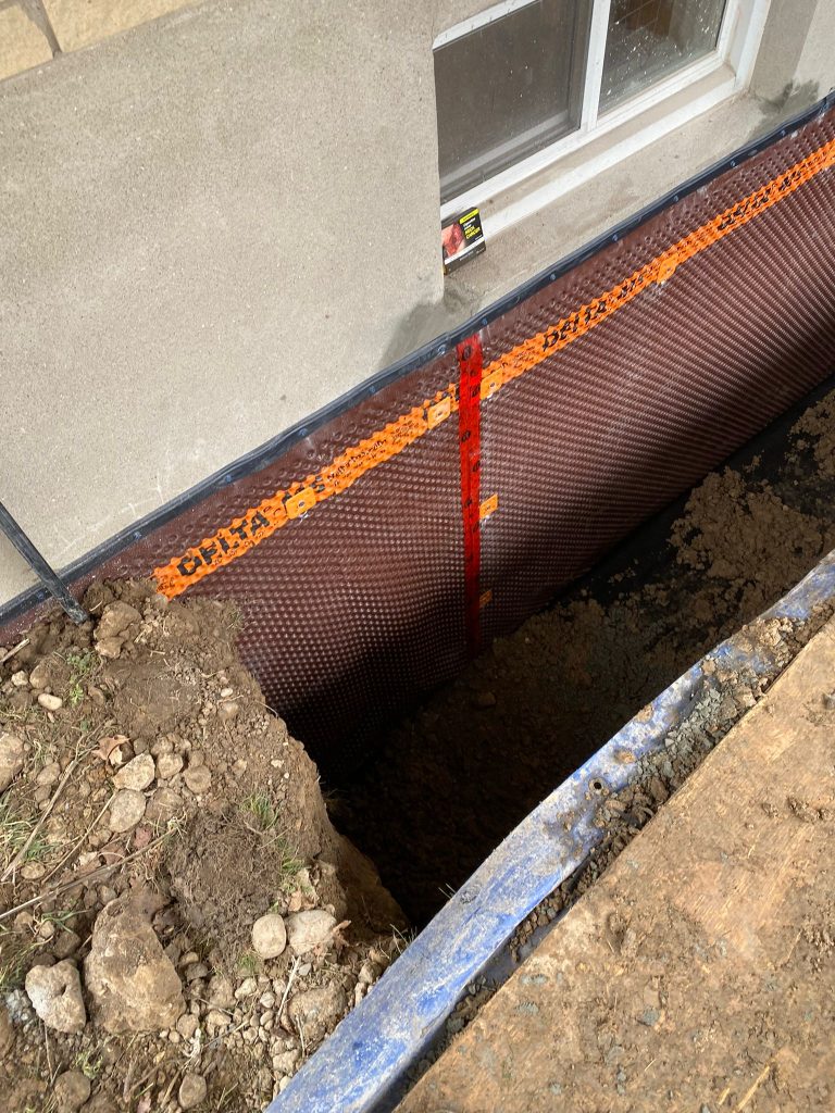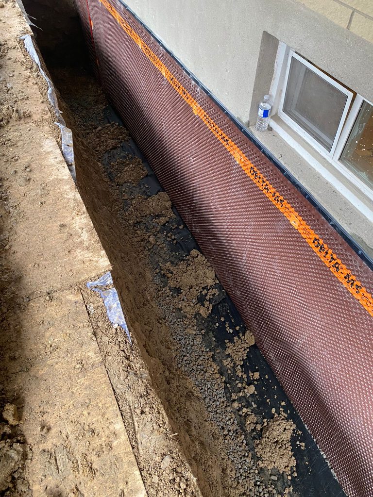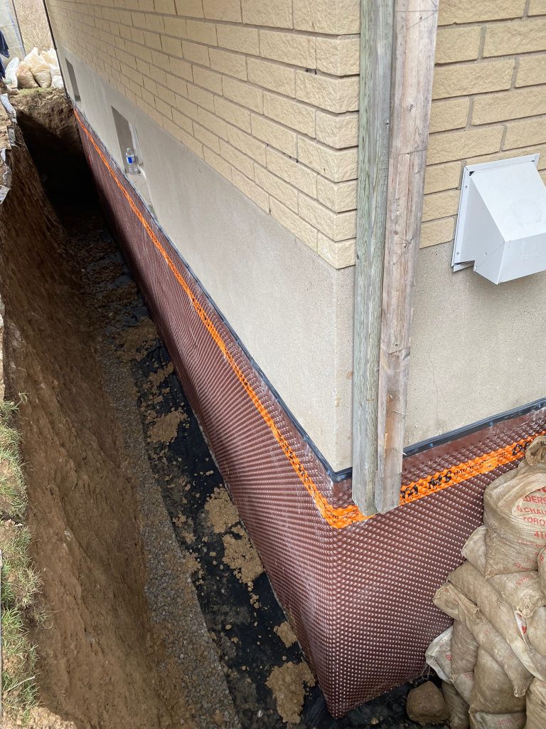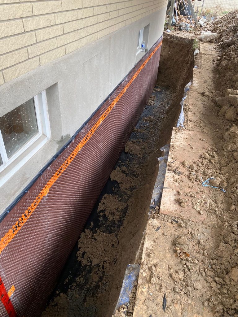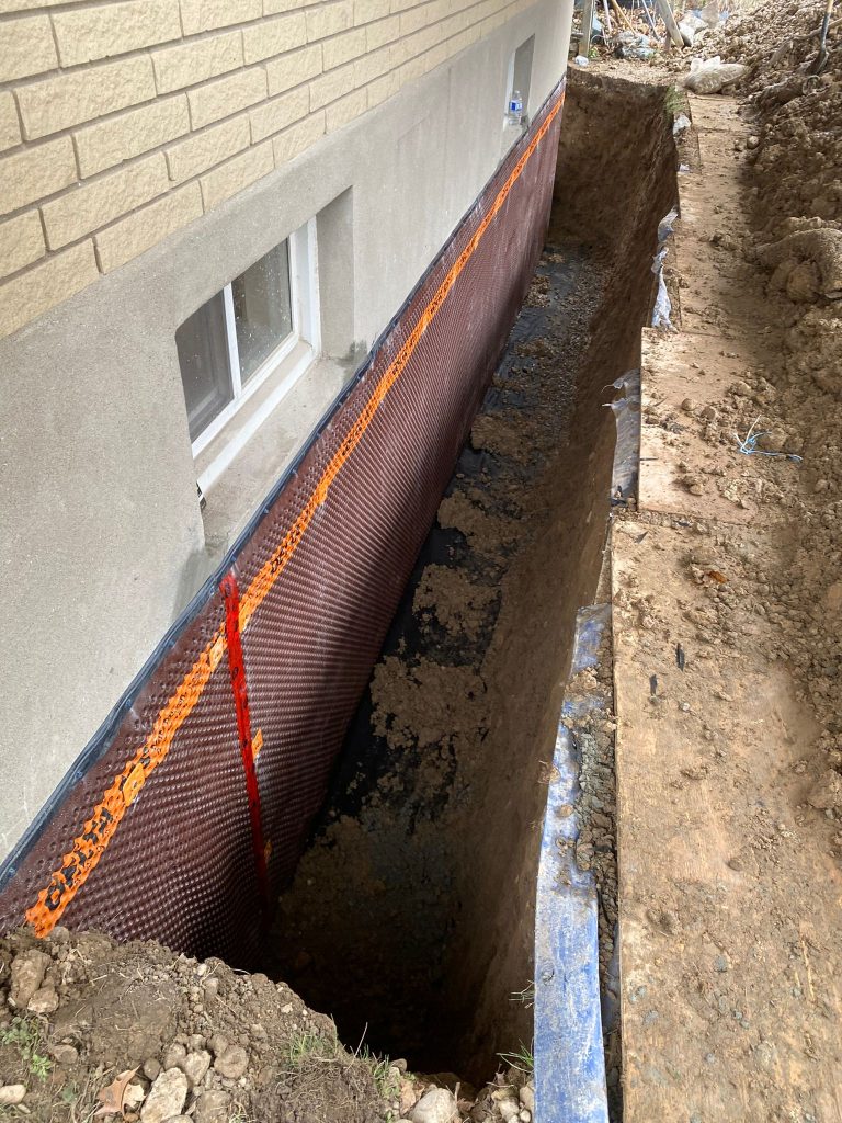 Protective drainage layers were installed where required, and the excavation was carefully backfilled. The work area was restored, ensuring proper grading around the home to further enhance drainage performance.