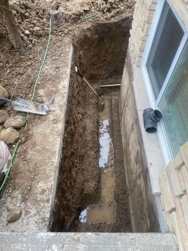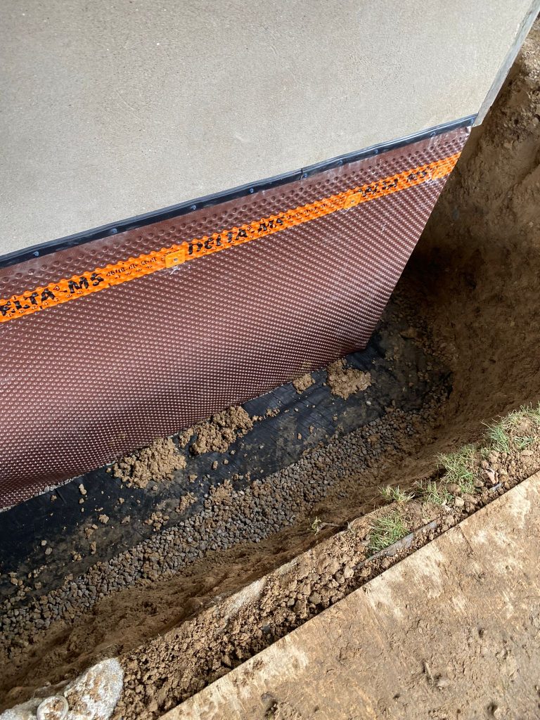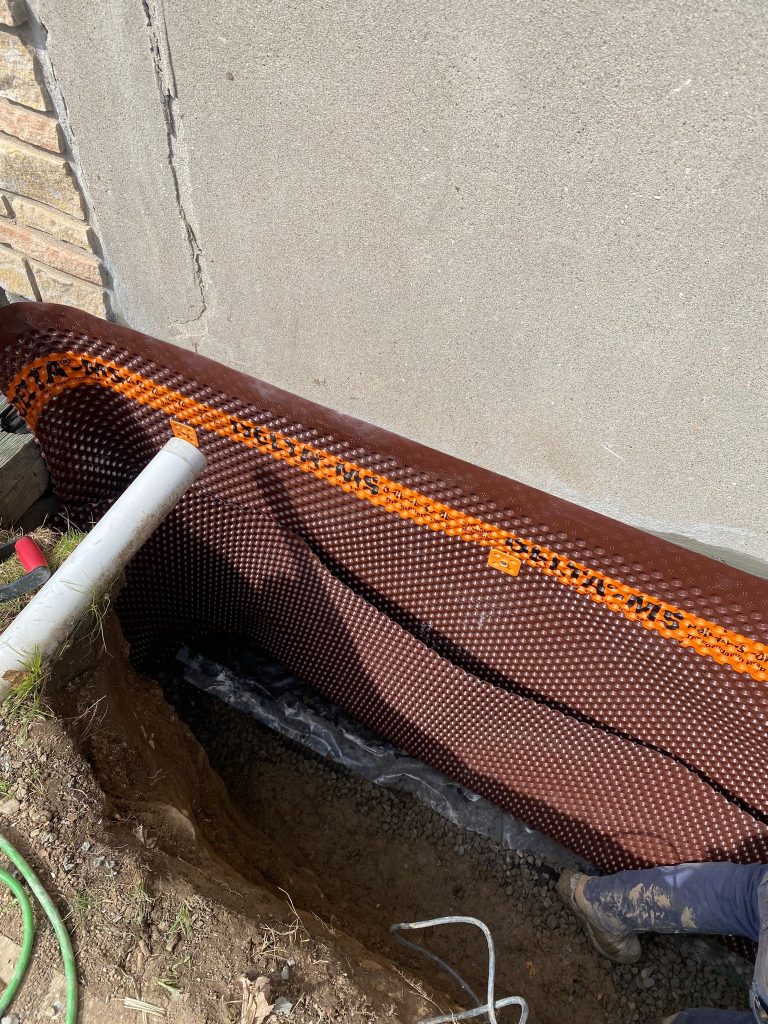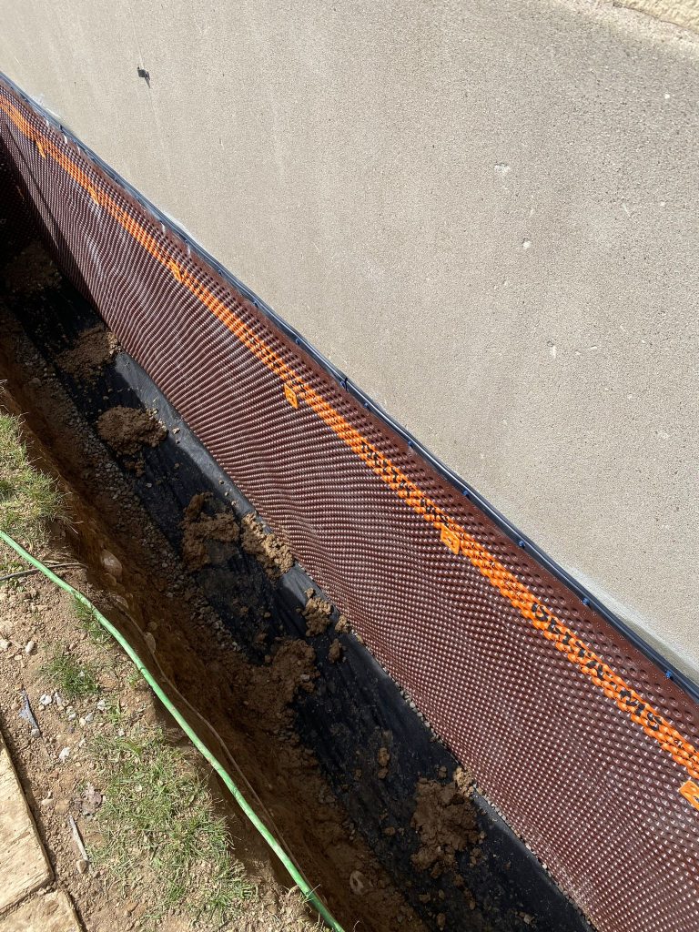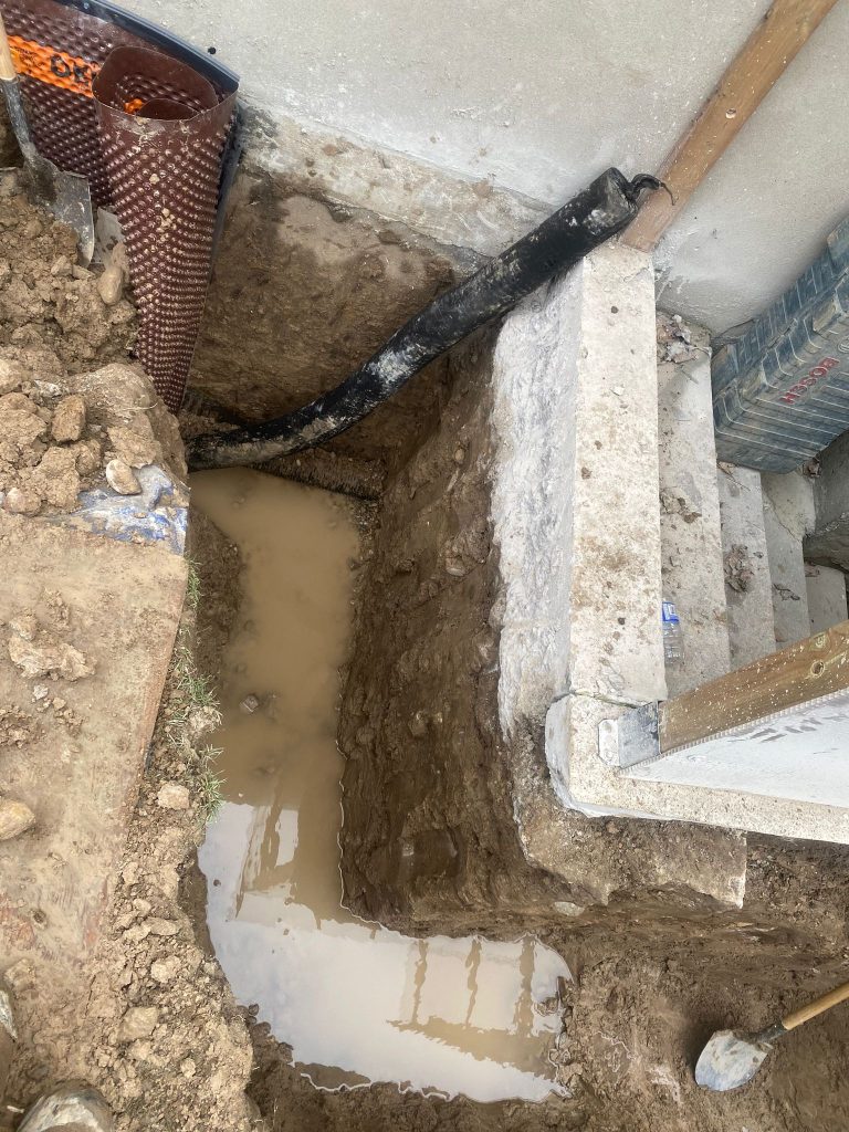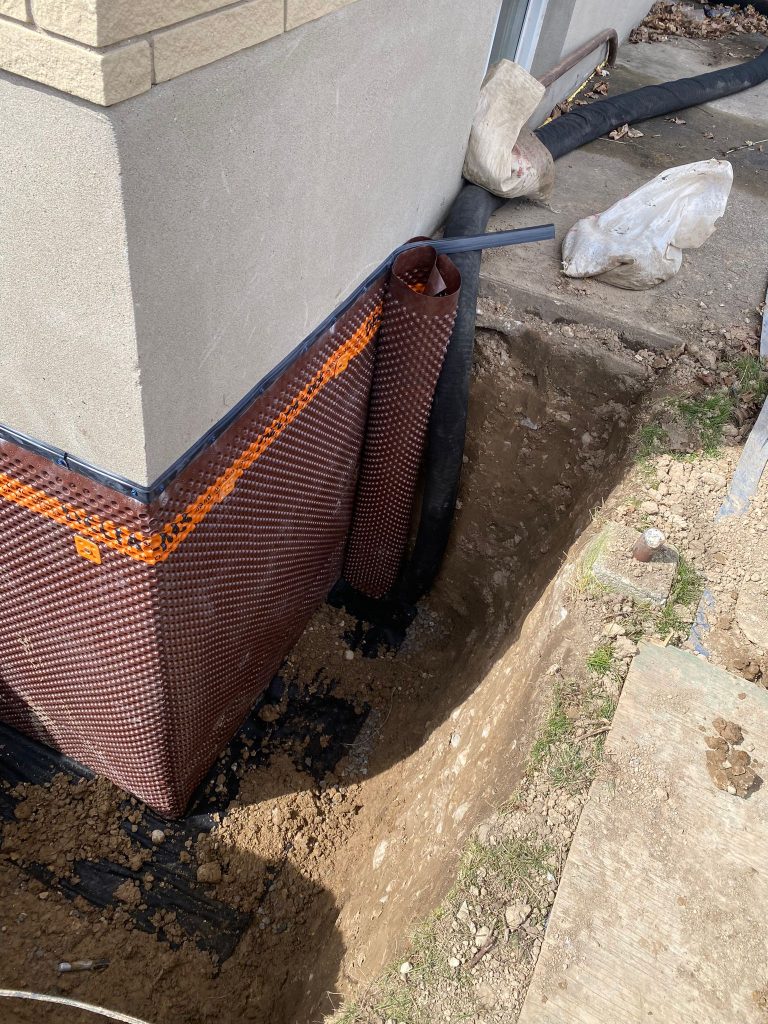 Protective drainage layers were installed where required, and the excavation was carefully backfilled. The work area was restored, ensuring proper grading around the home to further enhance drainage performance.