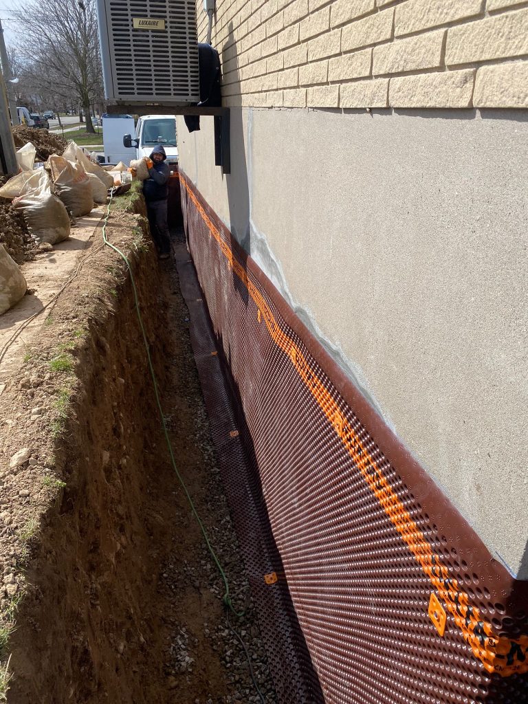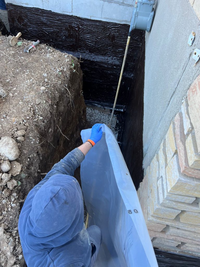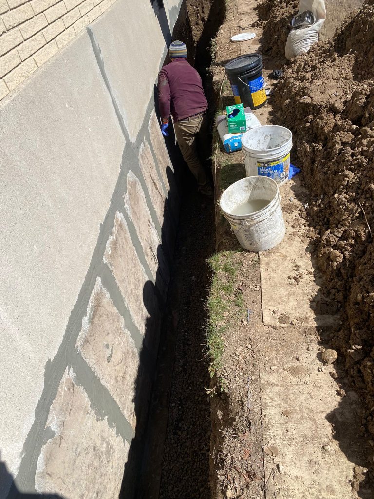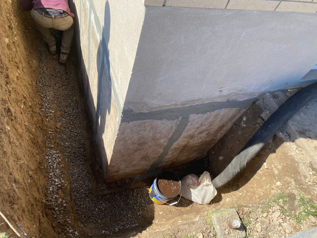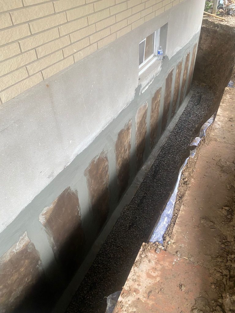 The exterior foundation walls were excavated to expose the full below‑grade structure. Once exposed, the foundation was thoroughly cleaned and inspected. All areas were waterproofed using our 6‑stage exterior waterproofing system, which is designed to seal the foundation, manage groundwater, and protect against hydrostatic pressure.