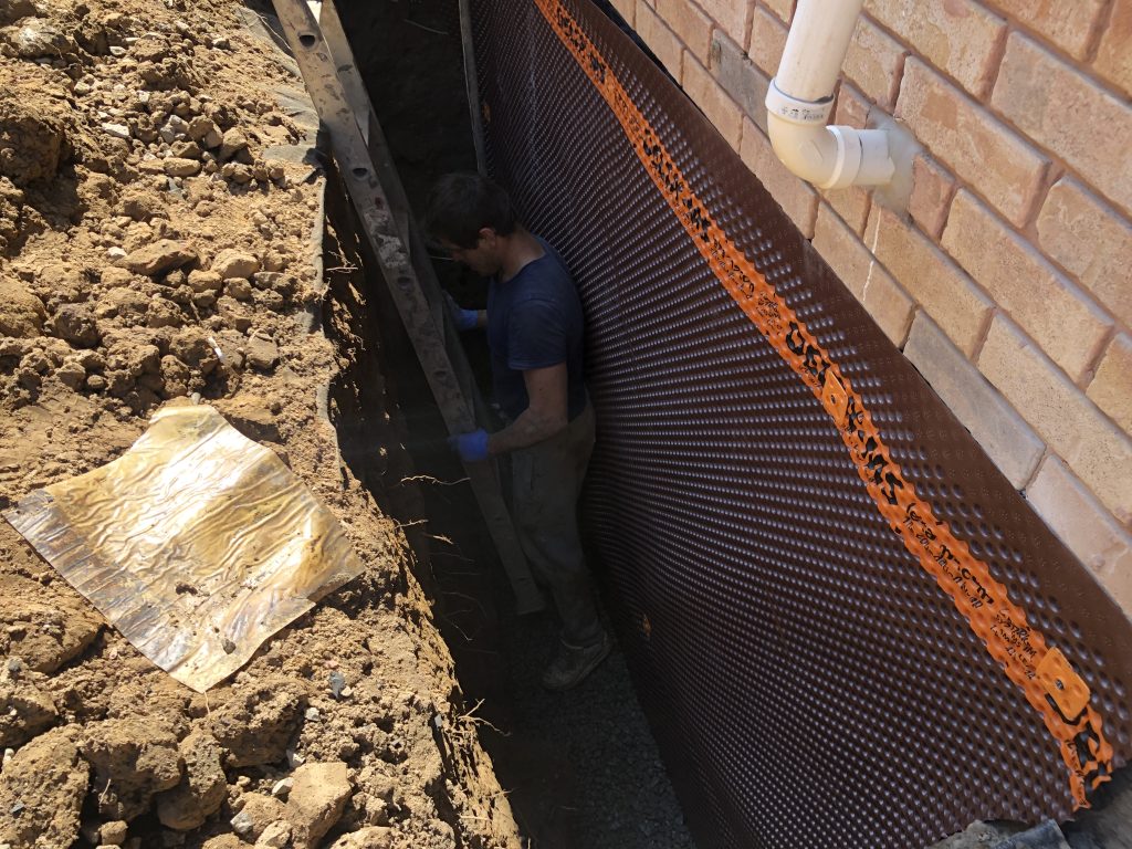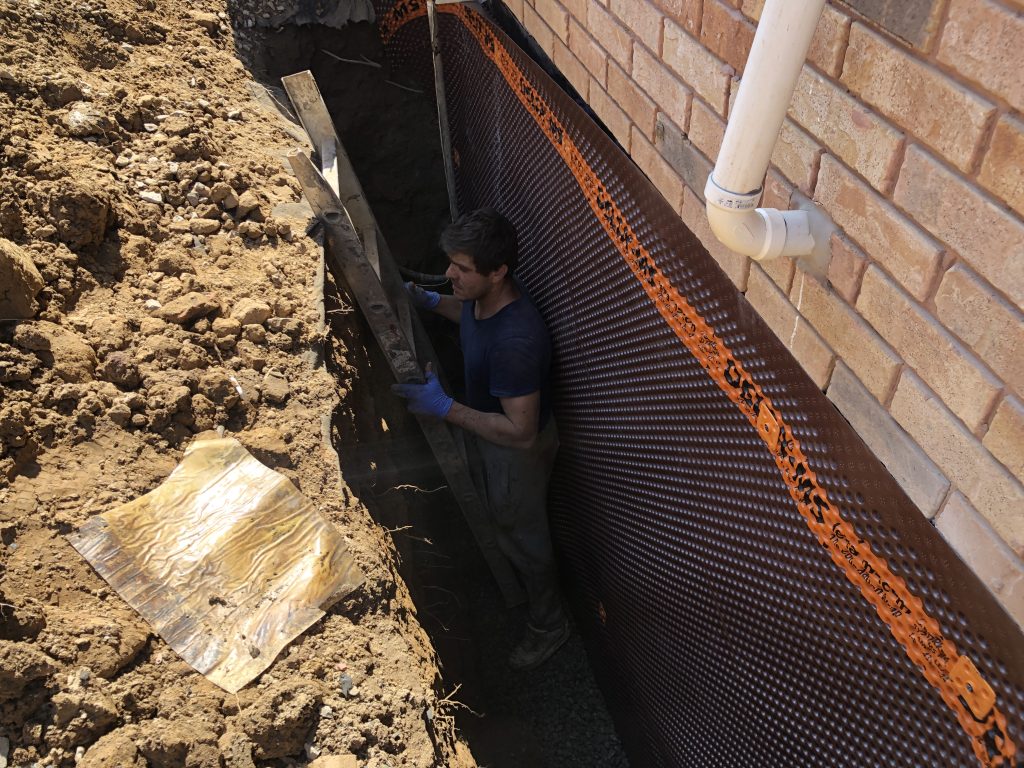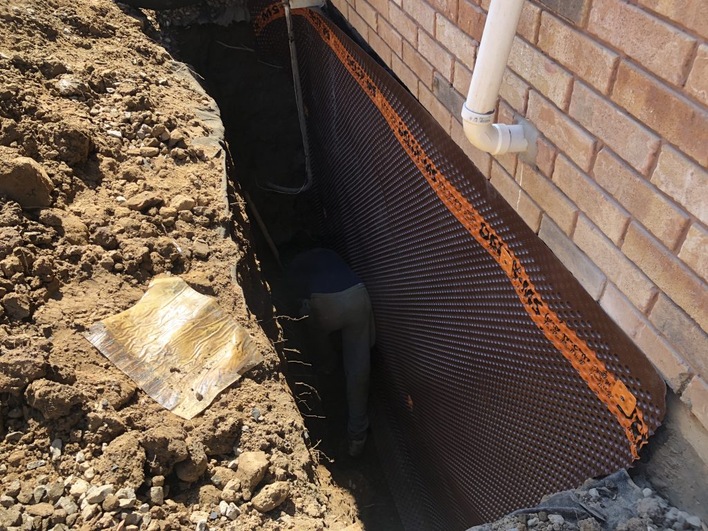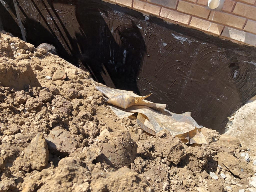 - Excavate the designated area down to the footing, exposing the wall and footing for waterproofing.